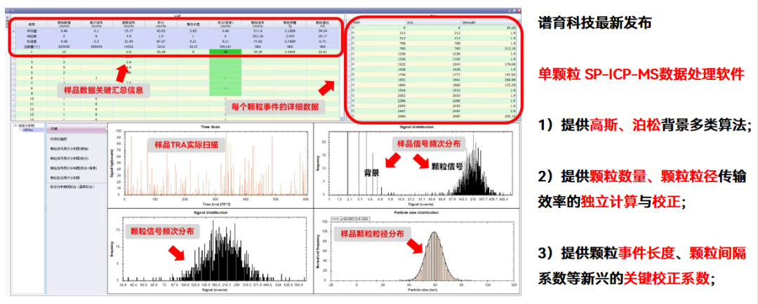 譜育科技作為國內(nèi)高端科學(xué)儀器領(lǐng)軍企業(yè)之一,在單顆粒-ICP-MS方面,進行了大量的基礎(chǔ)研究與前沿應(yīng)用的工作。如研發(fā)了單顆粒-ICP-MS專用的數(shù)據(jù)處理軟件,其中包含分析方法設(shè)置、單顆粒核心數(shù)據(jù)處理技術(shù)(背景閾值算法、顆粒事件識別的多重算法、顆粒信號整合、傳輸效率計算等)、單顆粒數(shù)據(jù)解析(溶解態(tài)離子濃度解析、顆粒數(shù)量濃度解析、顆粒粒徑分布解析)等多重核心功能。在環(huán)境、生物、半導(dǎo)體、微塑料、單顆粒等前沿領(lǐng)域也開展了大量研究。