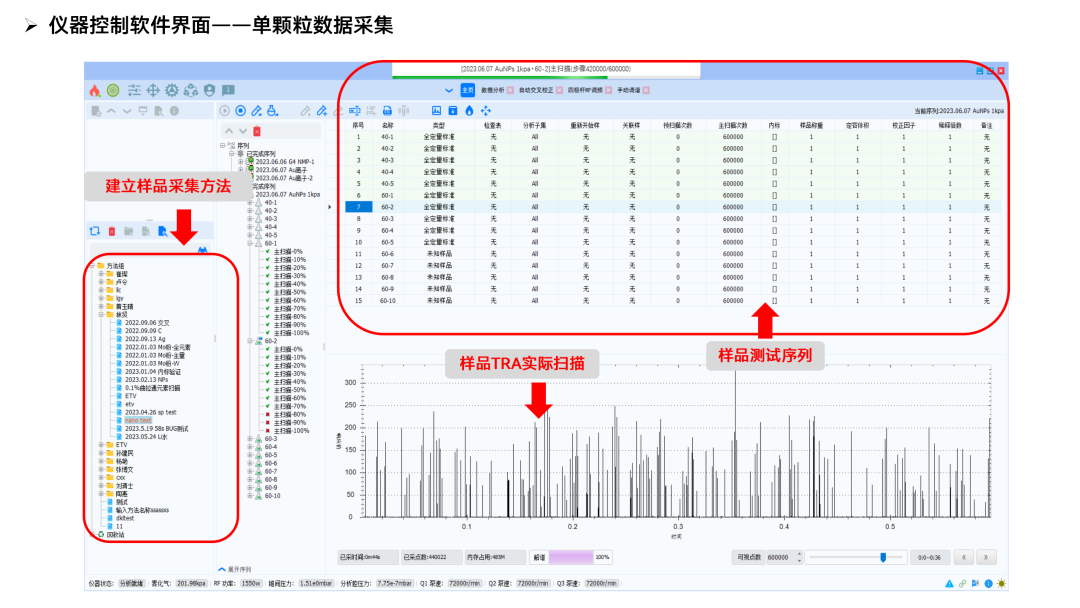 數(shù)據(jù)處理軟件是單顆粒分析中最重要的組成部分之一。譜育科技單顆粒數(shù)據(jù)處理軟件的研發(fā)基于成熟的單顆粒分析經(jīng)驗與研發(fā)實力,經(jīng)多次驗證與完善,成功的開發(fā)了單顆粒分析數(shù)據(jù)處理平臺。該軟件具備多種特點與優(yōu)勢,可為使用者提供完善的數(shù)據(jù)處理平臺(圖3、圖4)。