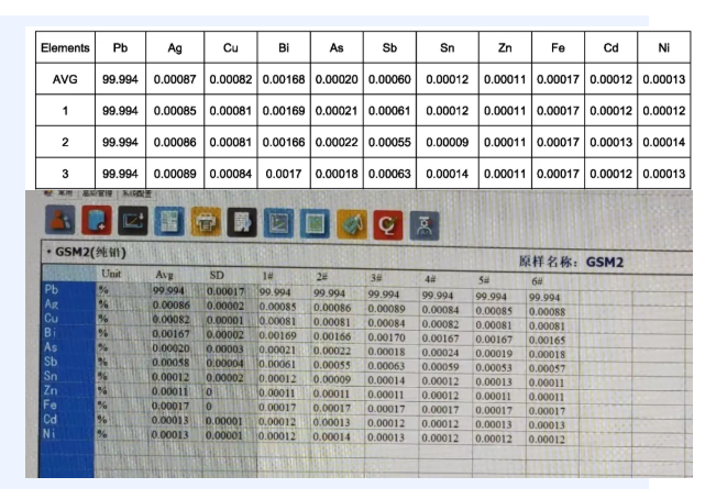 ARTUS 10檢測高純鉛錠的數(shù)據(jù)結(jié)果